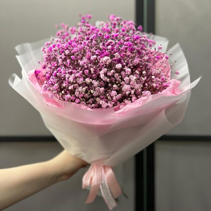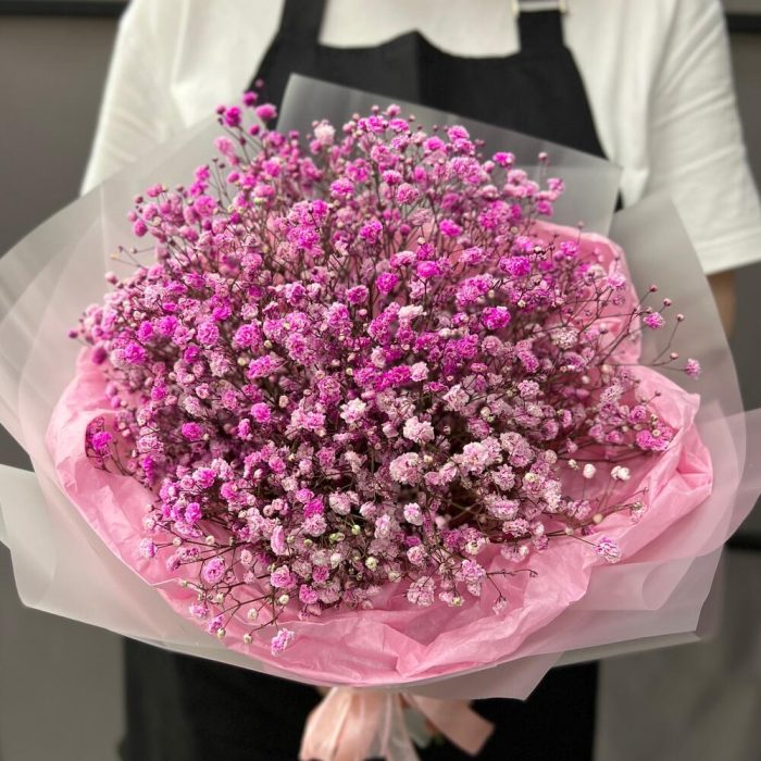 Гипсофила – 7 шт.Тишью – 3 шт.Пленка матовая – 5 шт.Лента атласная – 2 шт.