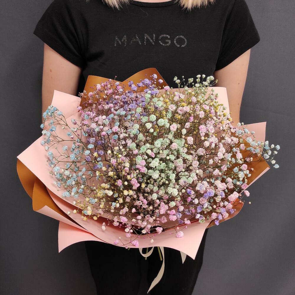 гипсофила белая – 2 шт.Гипсофила розовая – 1 шт.Гипсофила голубая – 1 шт.Гипсофила фиолетовая – 1 шт.Пленка – 1 шт.Лента – 1 шт.
