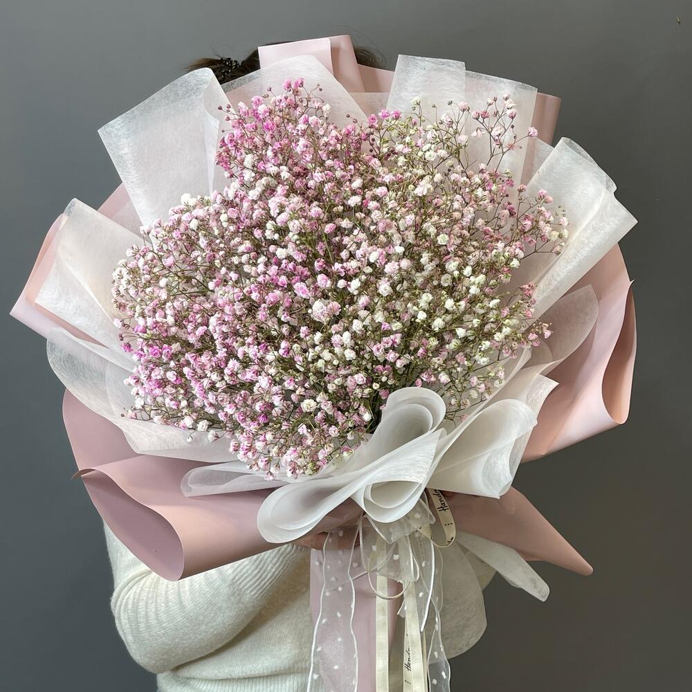 Гипсофила – 5 шт.Лента – 2 шт.Упаковка дизайнерская – 2 шт.