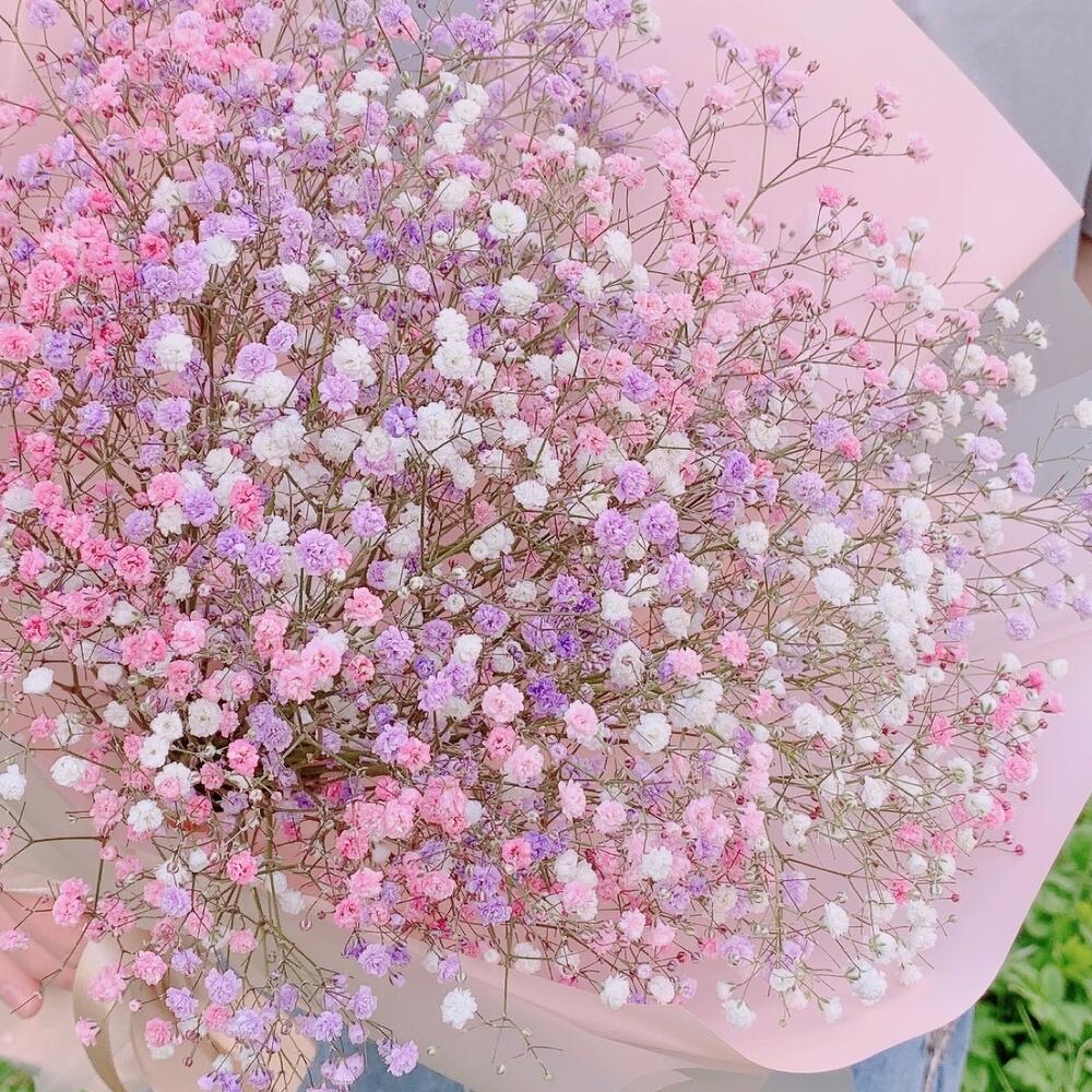 Лента атласная – 1 шт.Дизайнерская упаковка – 1 шт.инструкция по уходу за цветами – 1 шт.гипсофила радужная – 5 шт.любовь флориста (бесплатно) – 1 шт.витамины для цветов – 1 шт.