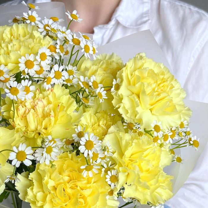 Солнечный букет диантусы и ромашка