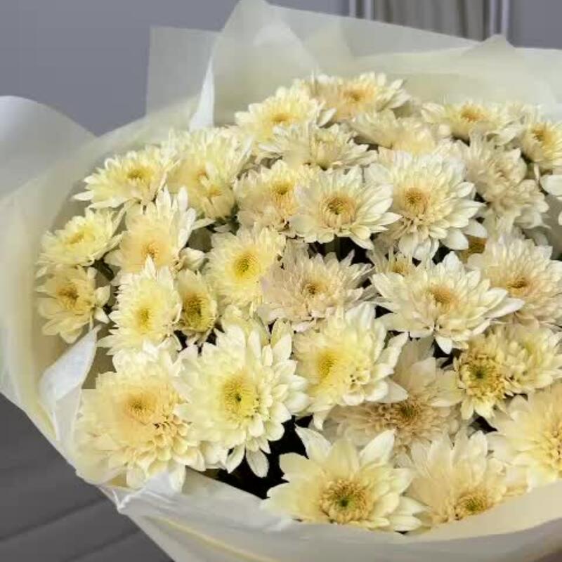 Пленка матовая – 1 шт.тишью хрустящая – 1 шт.хризантем кустовая sorbet с легким медовым ароматом – 9 шт.открыточка брендированная в подарок – 1 шт.