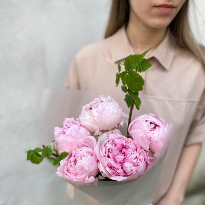 Пион Сара Бернар – 5 шт.ветка малины – 1 шт.упаковке дизайнерская – 1 шт.