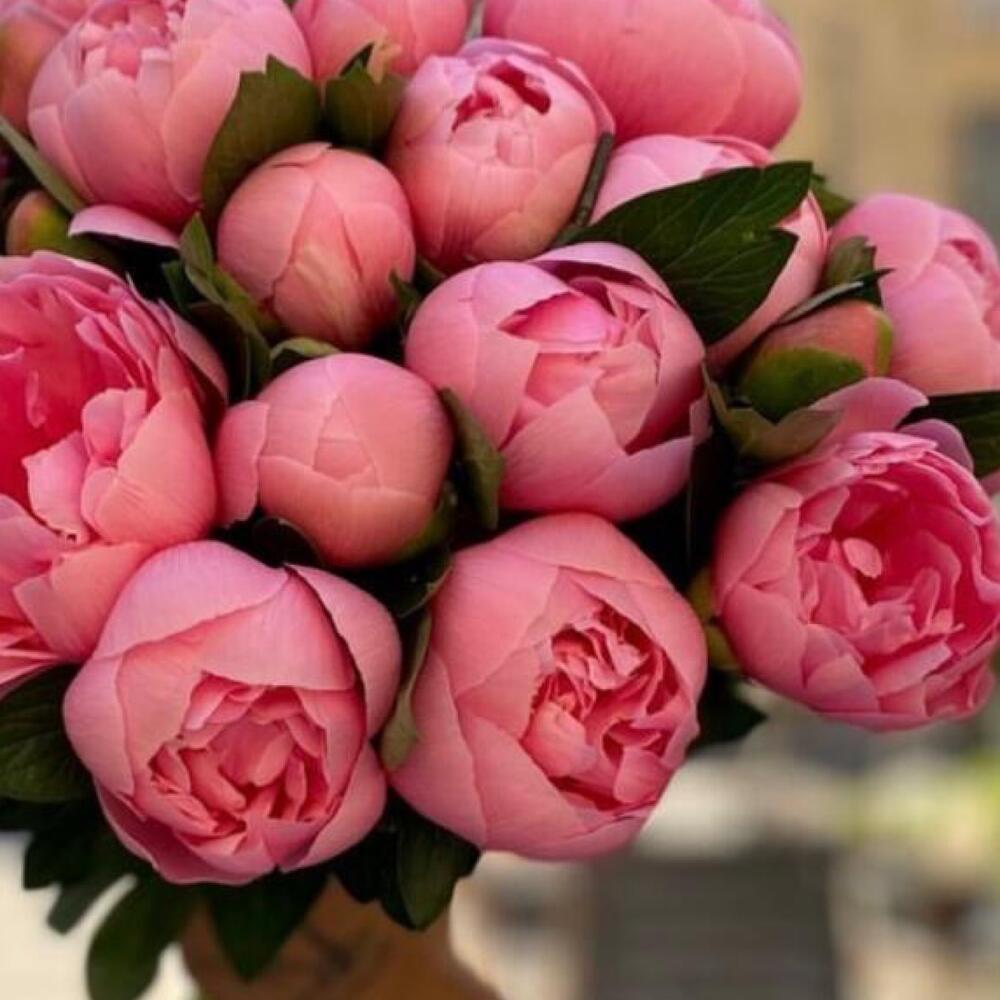 Пион розовый – 19 шт.Лента атласная – 2 шт.Открыточка с вашими пожеланиями – 1 шт.хорошее настроение – 100 шт.инструкция по уходу за цветами – 1 шт.коробка переноска – 1 шт.Кризал – 1 шт.