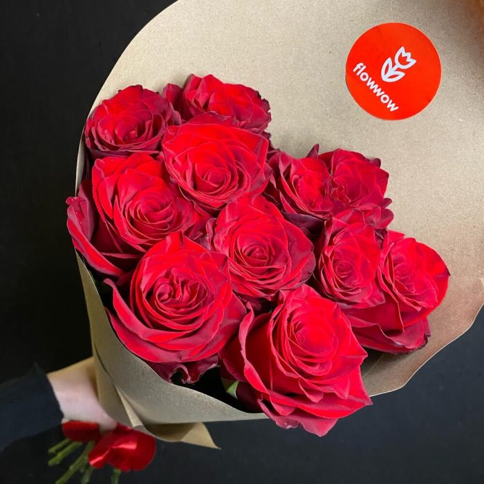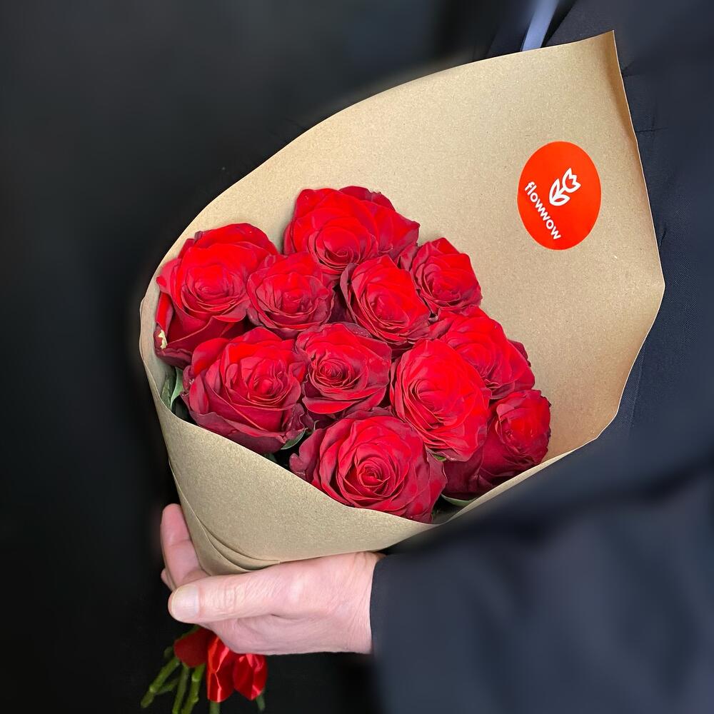 Роза эквадор 50 см – 11 шт.Крафт – 1 шт.Лента атласная – 1 шт.