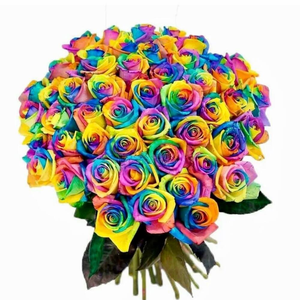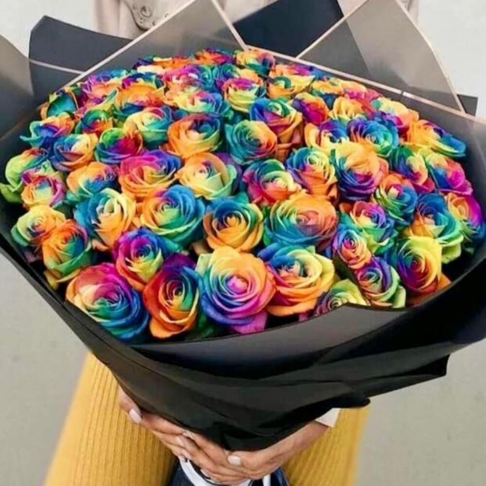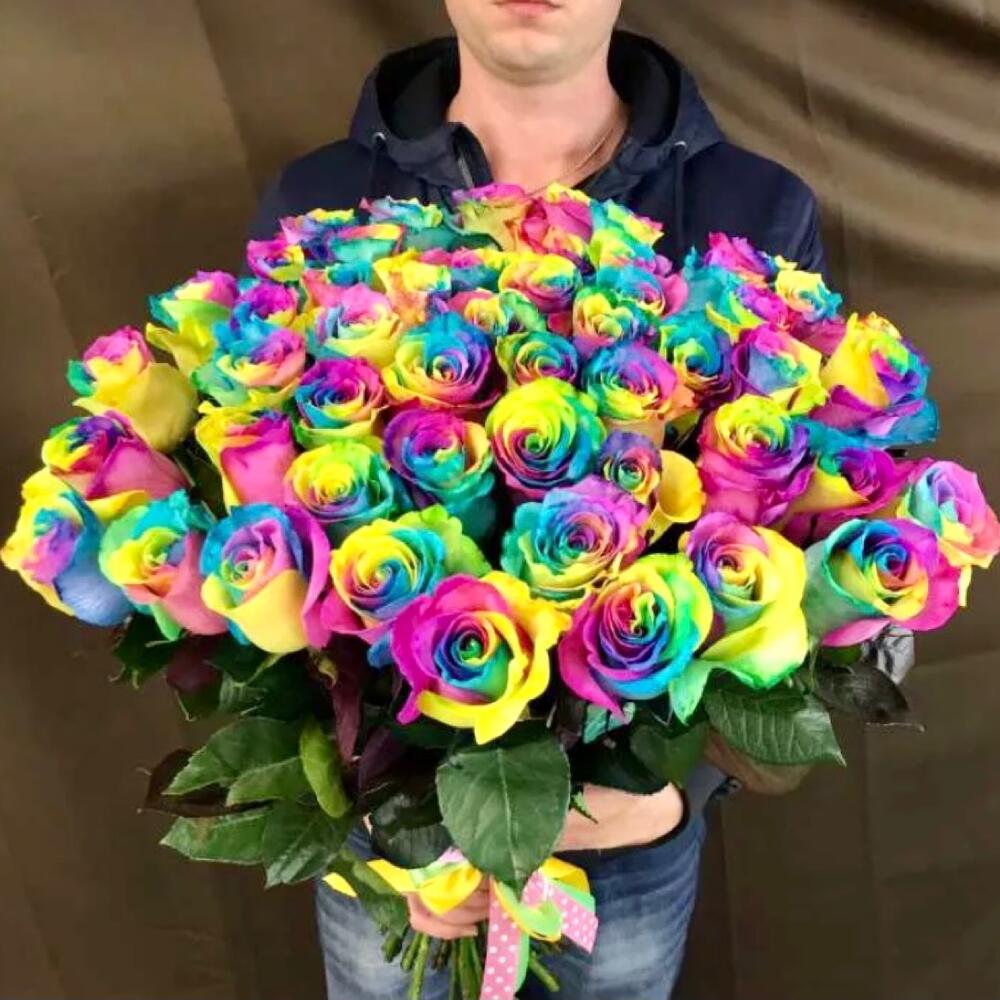 радужные розы – 51 шт.