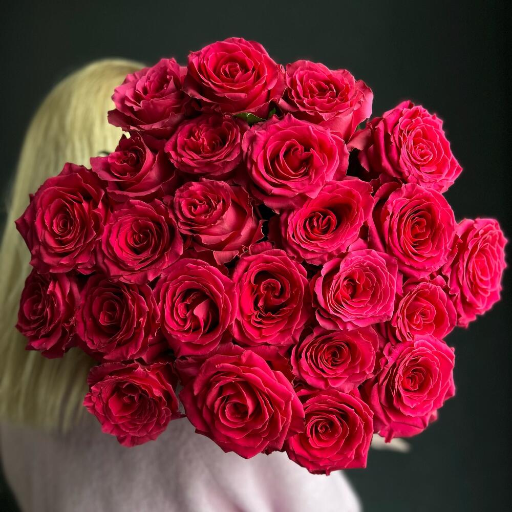 розы одноголовые – 25 шт.Атласная лента – 1 шт.