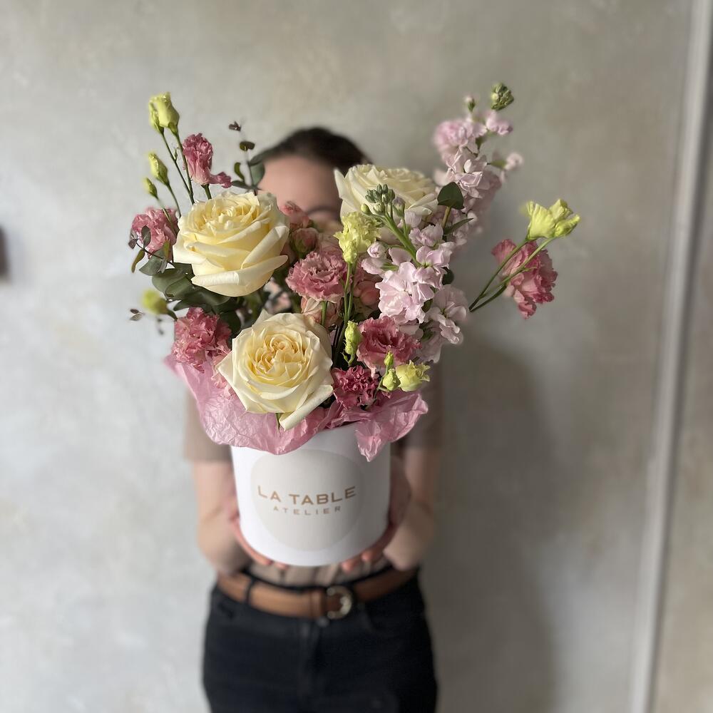 Нежная композиция в шляпной коробке