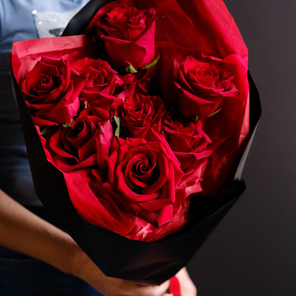 роза explorer – 9 шт.бумага дизайнерская – 2 шт.Тишью – 2 шт.Лента атласная – 1 шт.