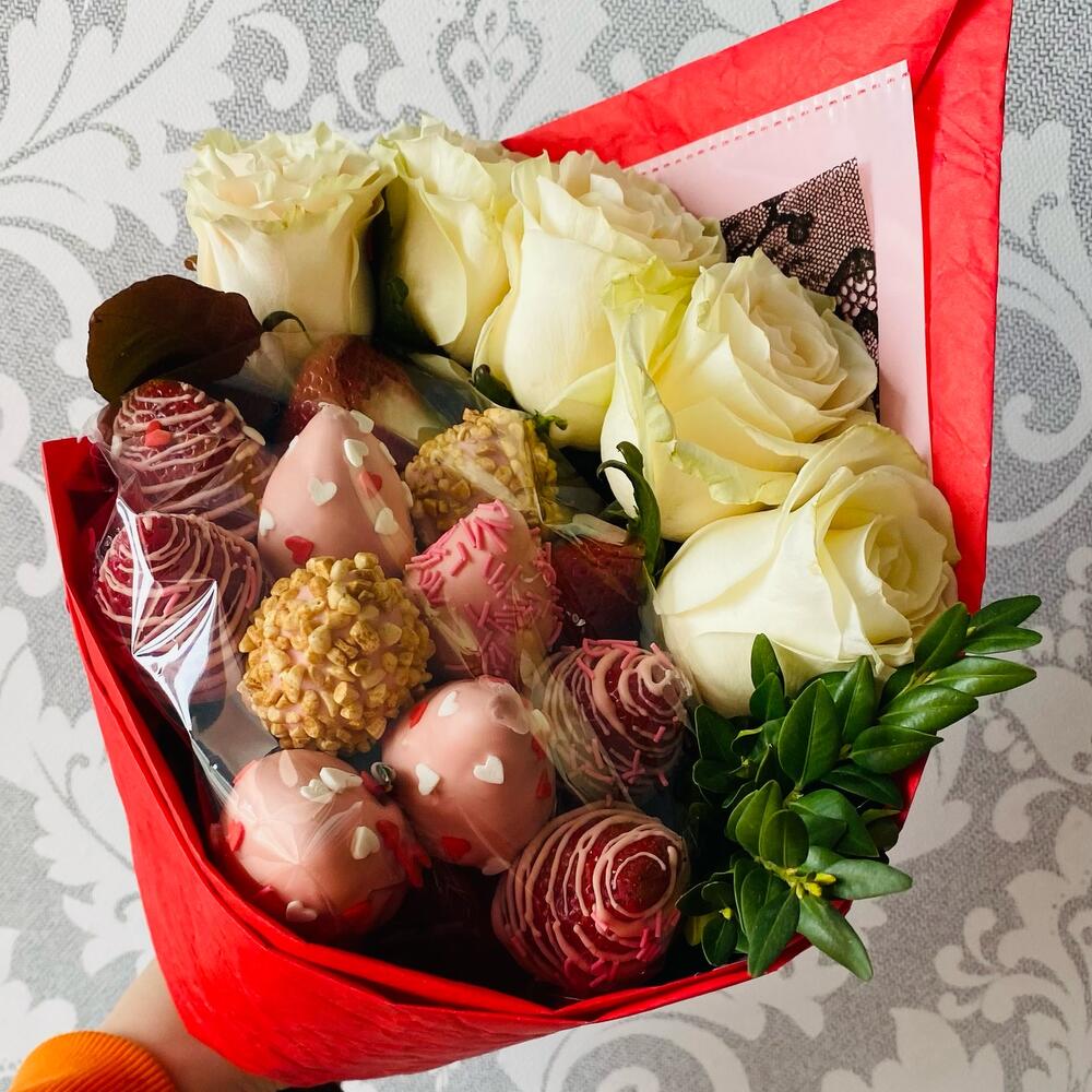 Купил цветы для своей девушки на День Святого Валентина. Она была очень рада и сказала, что таких красивых цветов у нее еще не было. Спасибо за вашу работу!